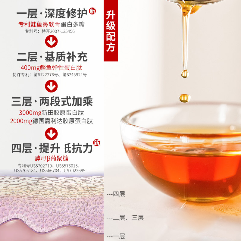 Peach juice beverage concentrated pulp fish collagen peptide (Shinoda, Japan) hydrolyzed collagen concentrate apple albumin bonito elastin peptide (Japan) resistant dextrin (water-soluble dietary fiber) chitosan oligosaccharide West India cherry C powder synzyme yeast β-glucan salmon protein powder