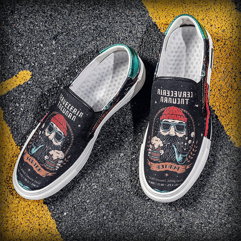 Canvas Shoes Men's Football Trend Men's Low Help Breakfast Shoes Doodle Plate Shoes Boys Han Edition