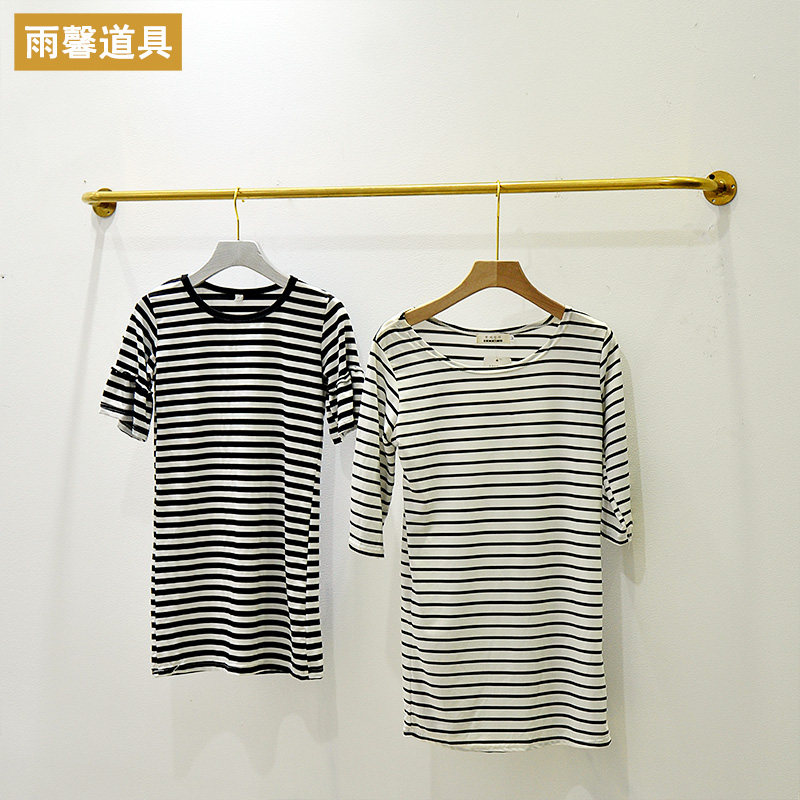 Clothing Store Show Rack Upper Wall Wall-mounted Stainless Steel Hanging Hanger Hooks Golden Crossbar Side Hanging Women's Clothing Shelves