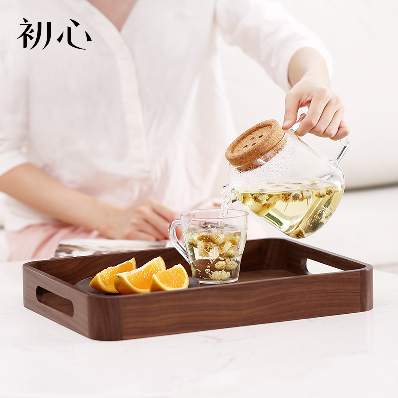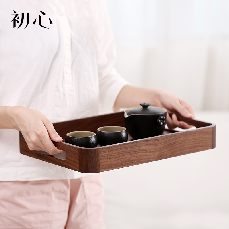 Early Heart Nordic walnuts Wooden Care Pan Rectangular Creative Home Wood Tea Cup Containing Dish Cutlery Tray Dinner Plate