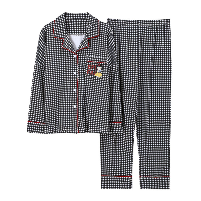 Sleepwear Woman Spring Autumn Season Long Sleeves Pure Cotton Thin Checkered Korean Version Cute Cartoon Autumn Winter Two Style Suit Home Clothing