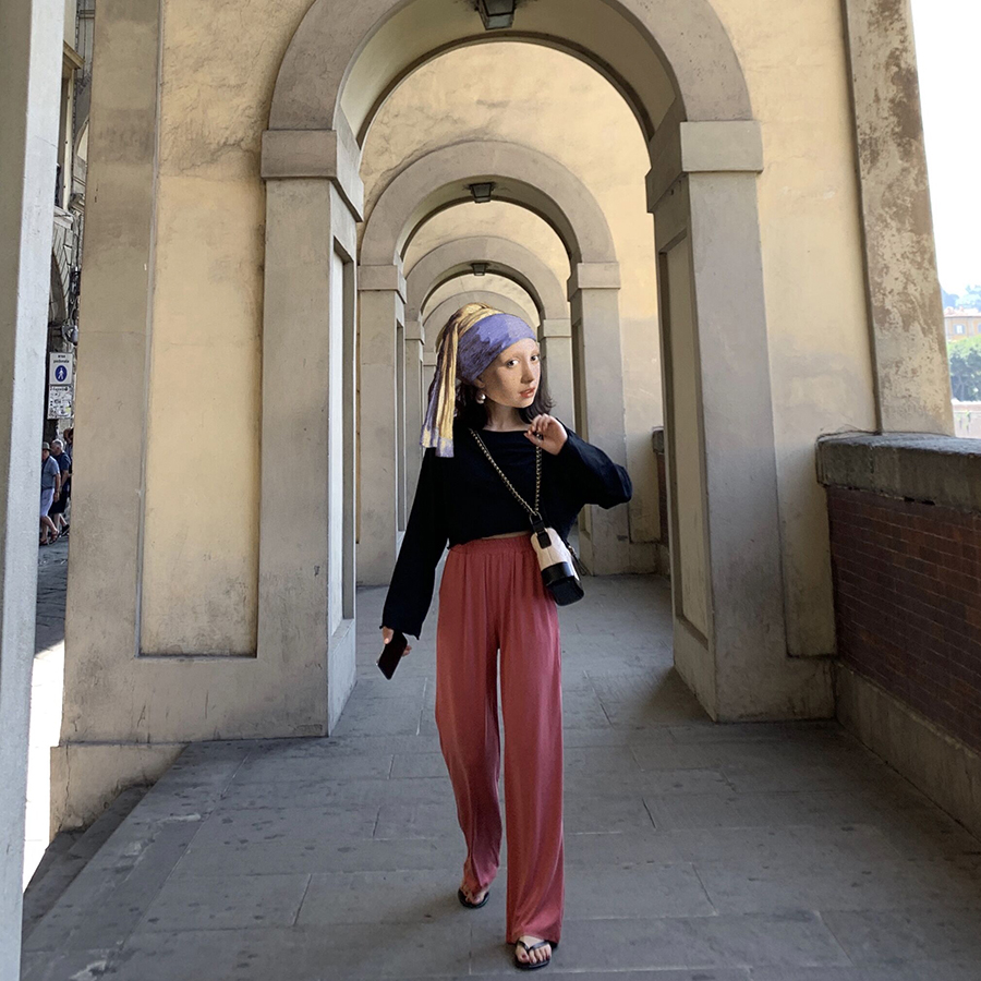 yesroom self-made spring new Korean version simple elastic all-match paper man elastic waist high waist mopping trousers