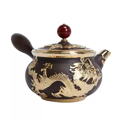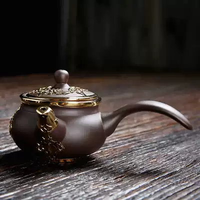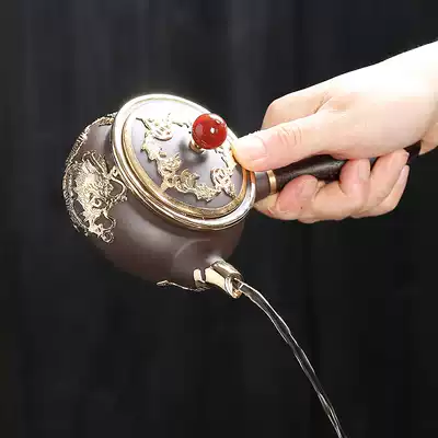 Purple sand gold inlaid jade-Teapot Purple sand gold inlaid jade-solid wood side handle pot Purple sand gold inlaid jade-side handle pot