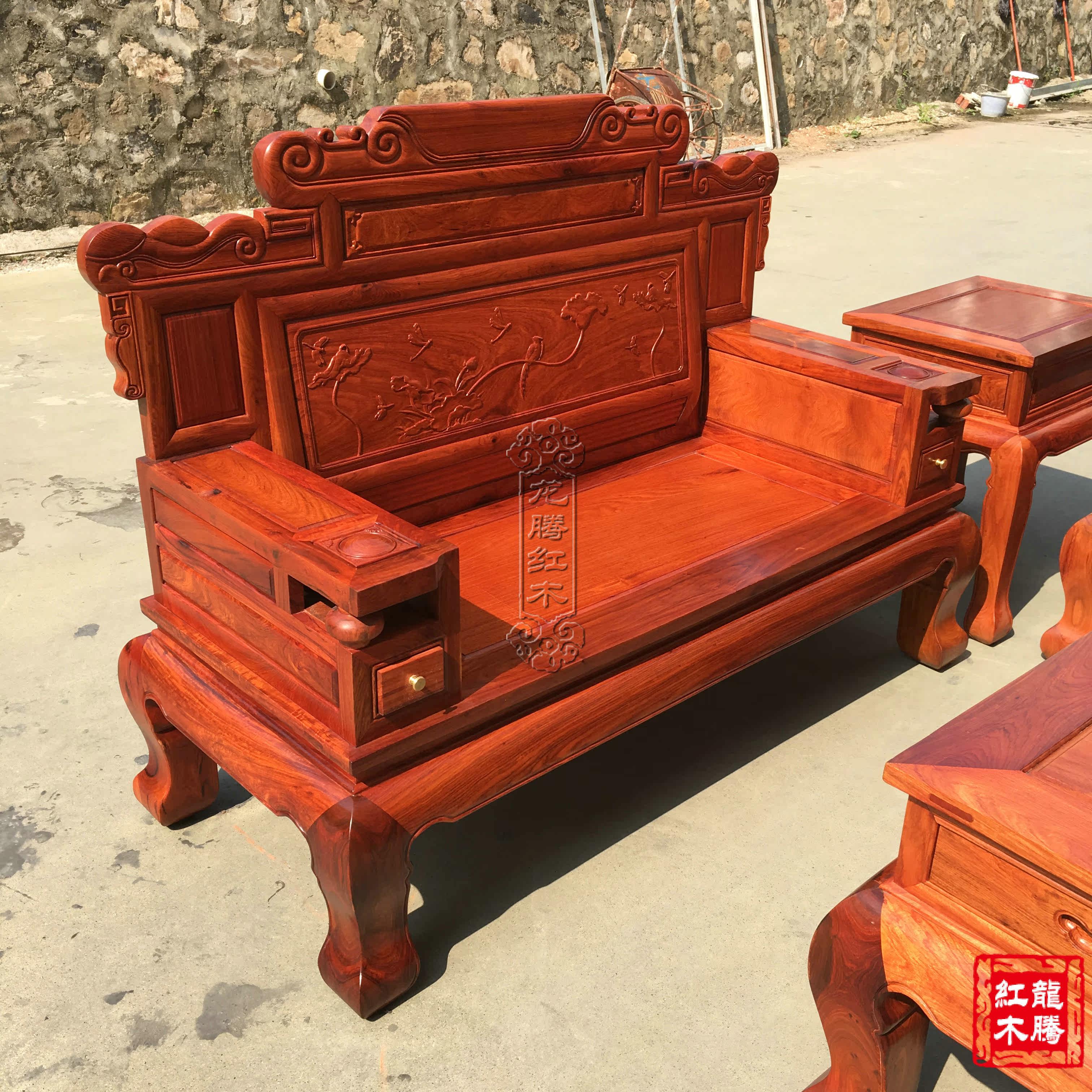 Mahogany boutique Burmese rosewood sofa big fruit red sandalwood money rolling 123 solid wood living room complete Chinese style home