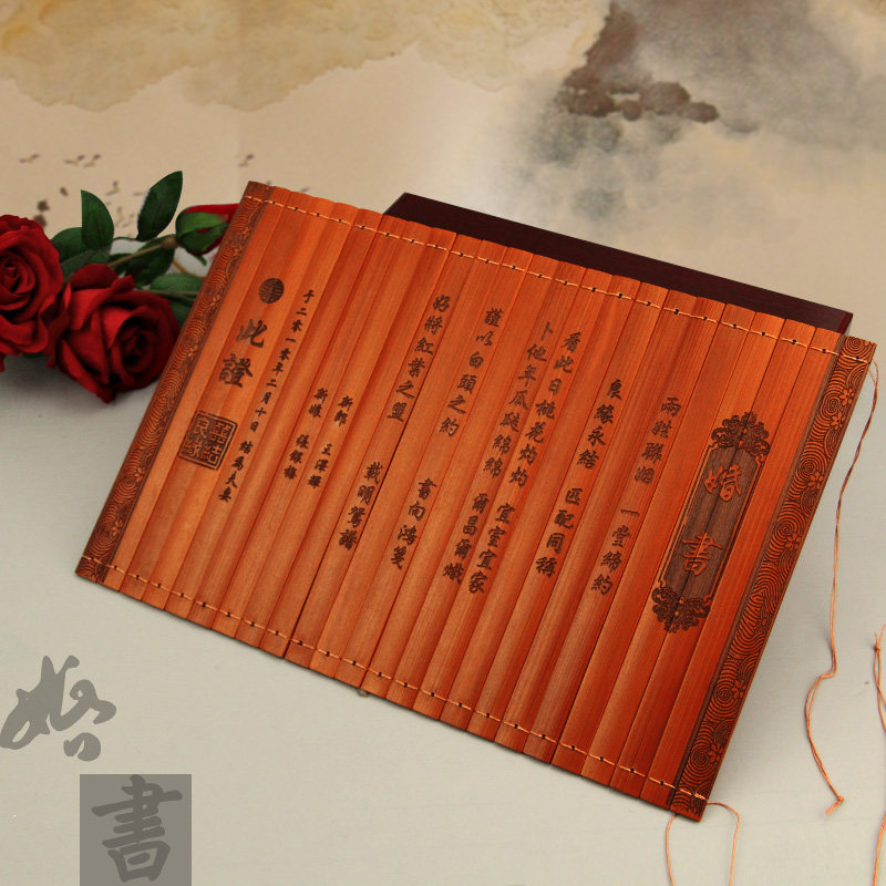 Custom bamboo slips wedding book wedding engagement book hotel Hanfu wedding gift girlfriend gift wedding gift scroll engraving