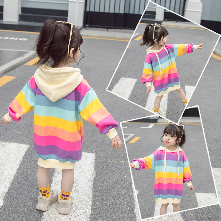 Female baby spring and autumn sweater dress 2021 new Korean version of the foreign school girl princess autumn long-sleeved inner jacket