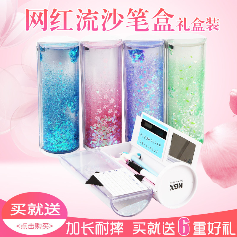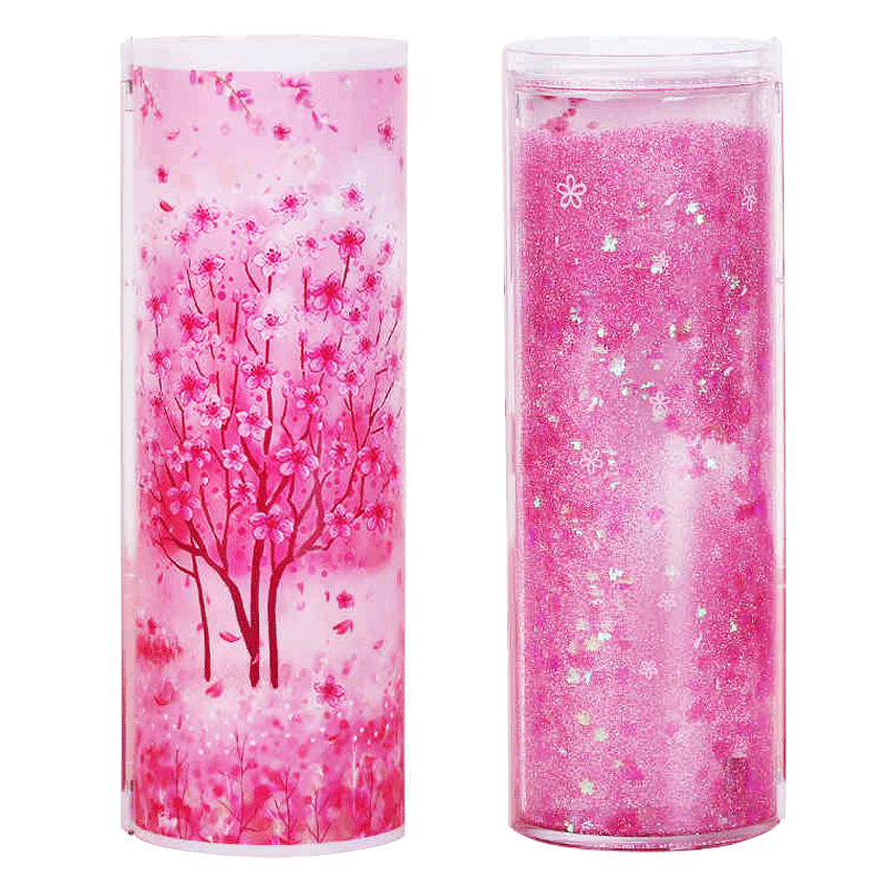 Stream Sand Pencil Case Pen Bag Cute Cherry Blossom Shake with Cute Big Capacity Primary And Secondary School Junior High School Junior High School Junior High School Girl Liquid Transparent Teenage Girl Han Edition Girl Stationery Suit Multifunction pencil case