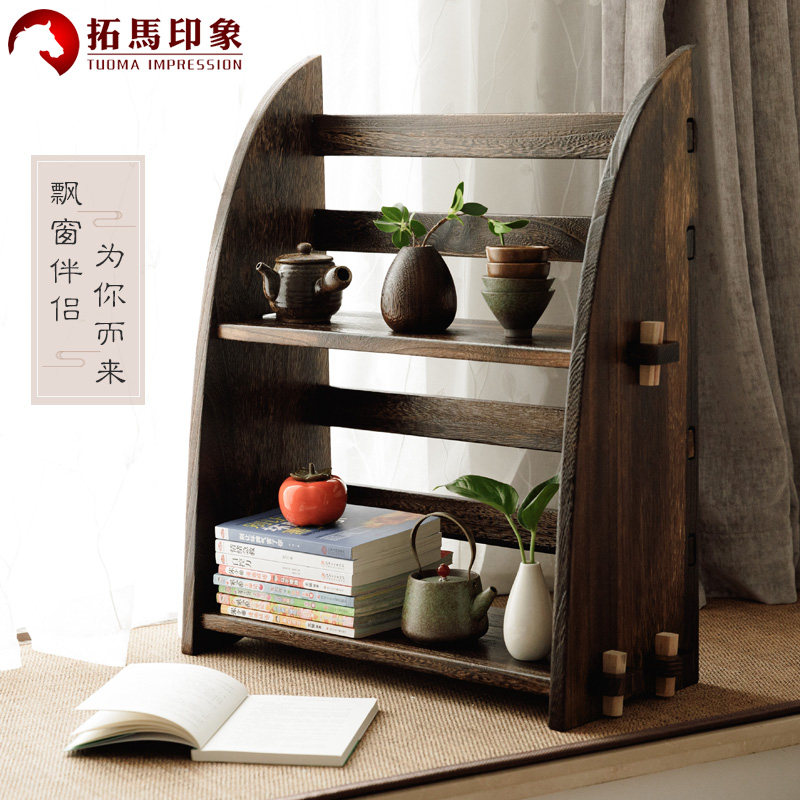 Japan-style Solid Wood Floating Window Bookcase Brief small bookcase Floor Students Dormitory Shelf shelf Easy grid shelf