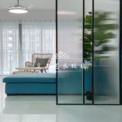 Striped glass partition Corrugated wave art glass narrow frame entrance tempered process bathroom screen customization