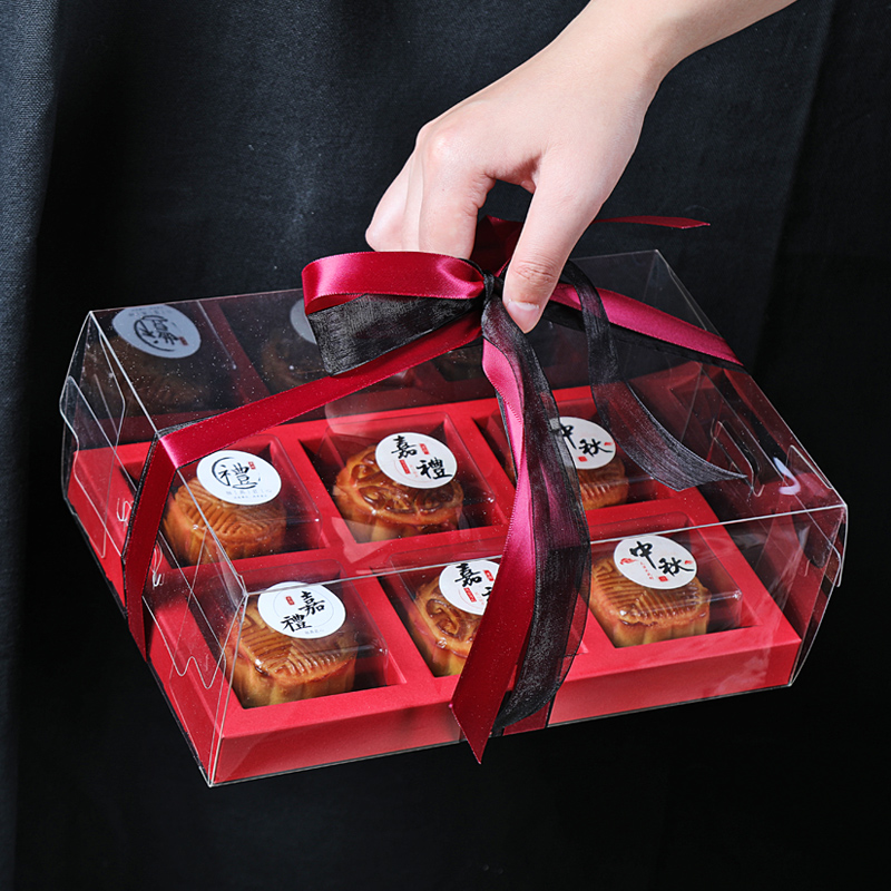 Ice-skin mooncake Egg Yolk Crisp plastic case square transparent snowy Lady Green bean cake transparent packaging box with bottom-care creativity