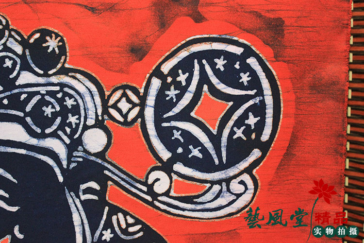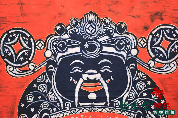 Portrait of the Red God of Wealth Handmade cloth batik painting Lucky treasure Hanging painting Living room shop Feng Shui decoration Hanging painting