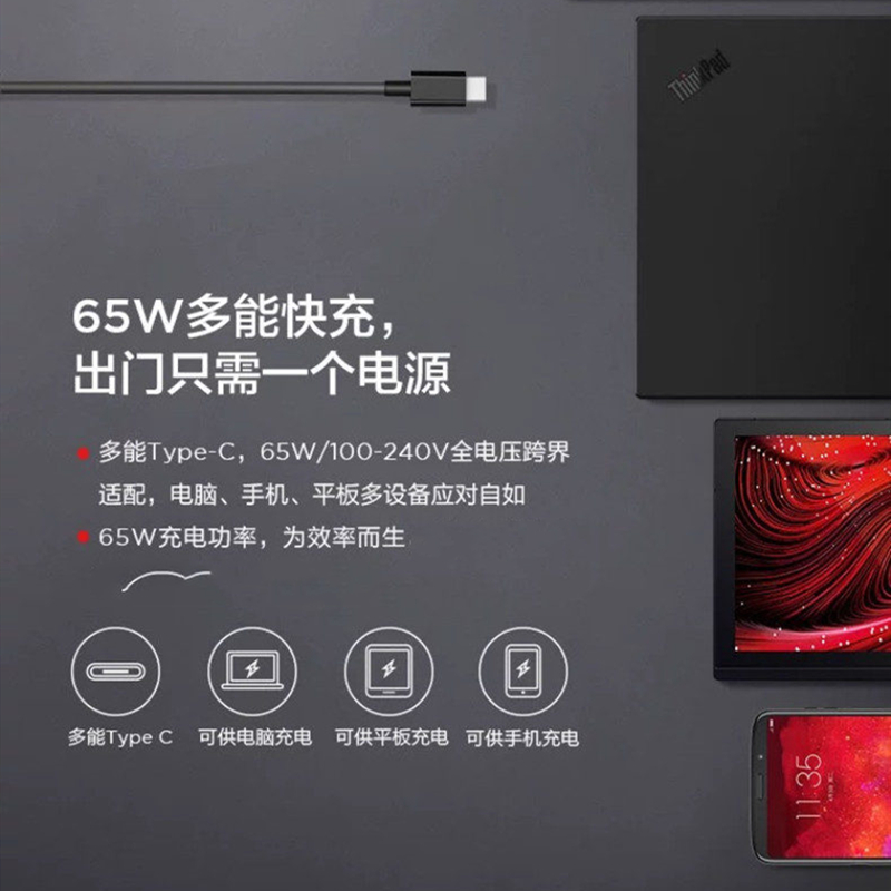 Lenovo original loaded Type-C multifunction portable 65W gallium nitride GaN mouth red power supply adapter Thinkpad notebook PC mobile phone flat PD fast-charging usb-c thunder