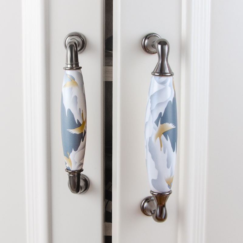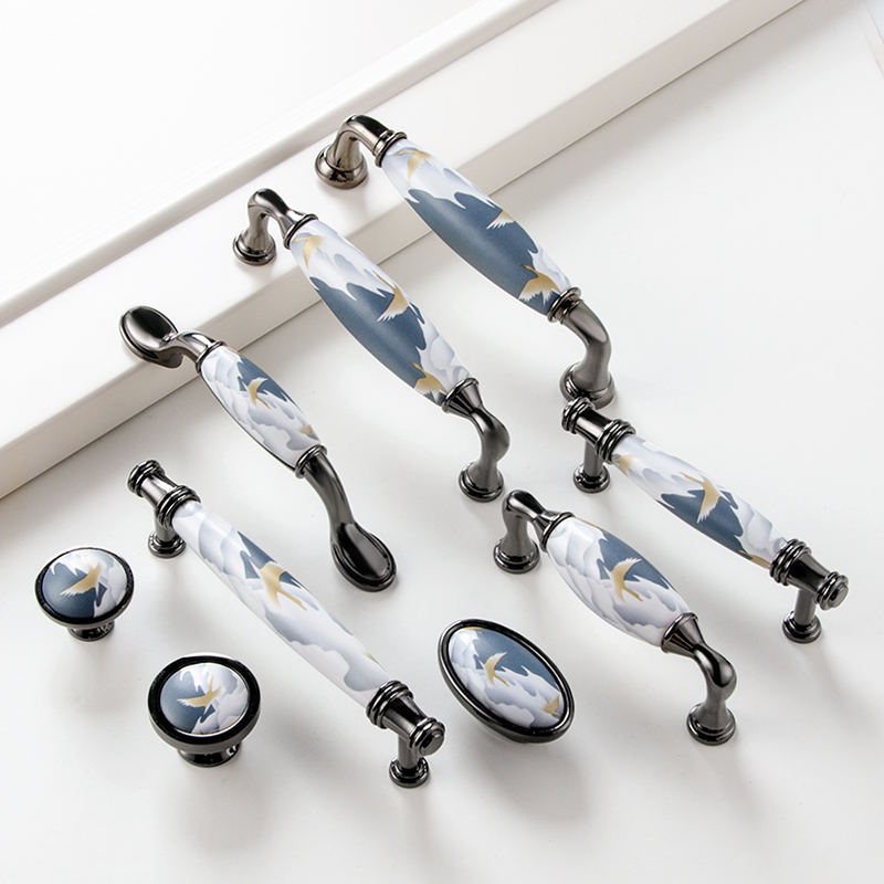 New Chinese handle cabinet door New Chinese round modern cabinet ceramic Single-hole handle European style kitchen cabinet wardrobe door handle-Taobao