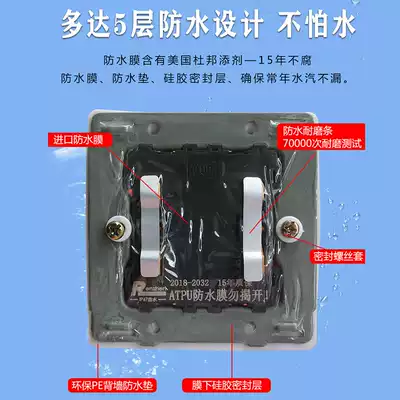 renzhen wall switch super waterproof three-open single-control double-cut household wall switch 16A silver gray industrial