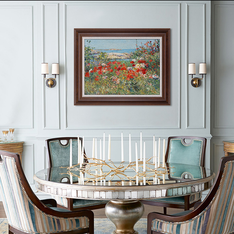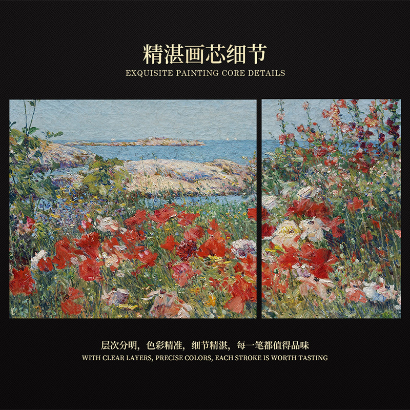 Yi Jing European flower oil painting American dining room wall painting Decorative painting Bedroom entrance mural print Seaside Garden