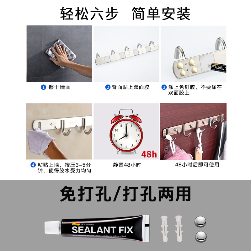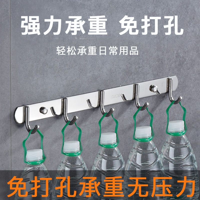 Hook Powerful Sticky Glue Row Hook Wall-mounted Free Kitchen Stainless Steel Bathroom Hung Hanger Door Rear Toilet Sticker Hook