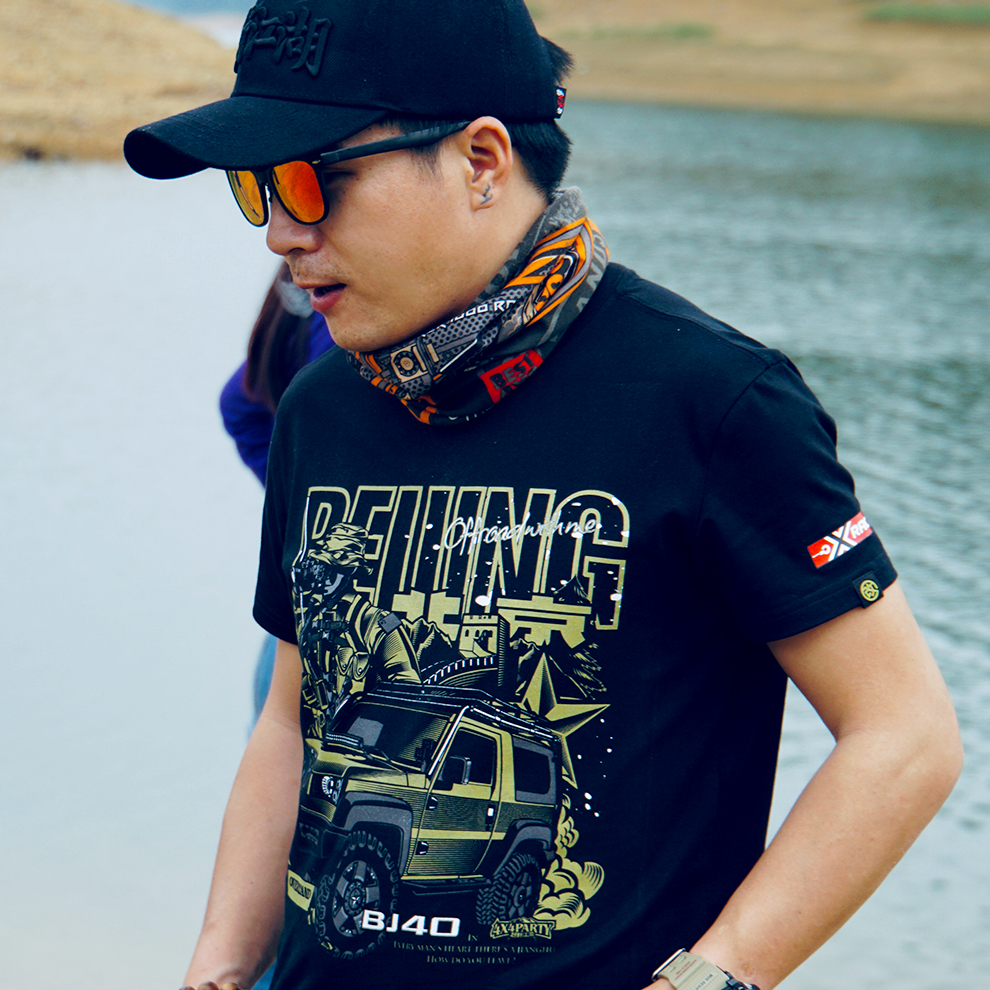 Off-road rivers and lakes bj40 car Beijing BJ40 personality printing short-sleeved T-shirt Pure cotton crew neck tide brand large size T-shirt
