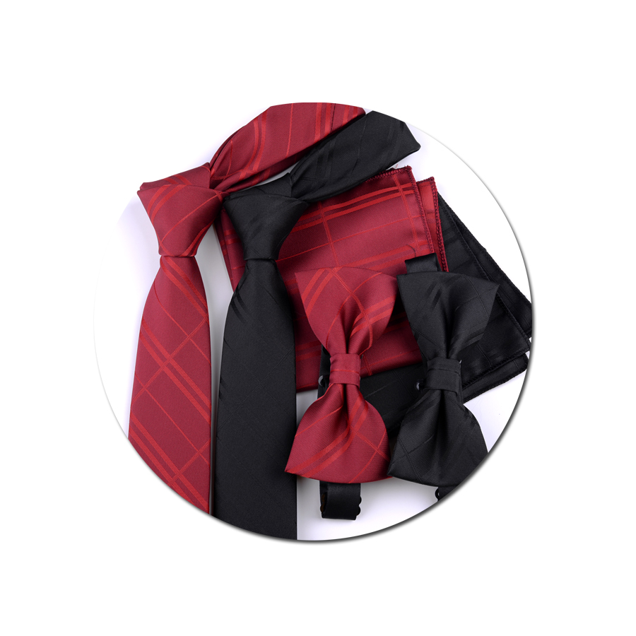 Black Stripe (Tie) Wine Red Striped (Tie) Wine Red Stripe (Pocket Towels) Black Stripes (Pocket Towels) Black Stripes (Collars) Wine Red Stripes (Collar Tie)