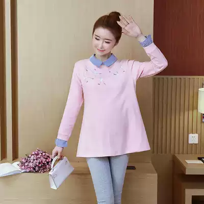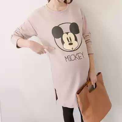 Pregnant women's autumn long-sleeved T-shirt women's fashion 2021 new Korean loose large size top spring and autumn pure cotton inner jacket