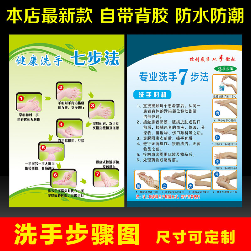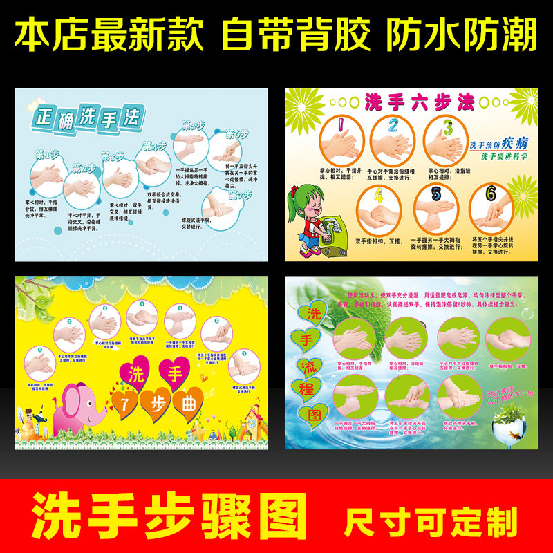 Six-step hand-washing method wall sticker standard kindergarten toilet hospital clinic seven-step hand-washing method 7 steps self-adhesive