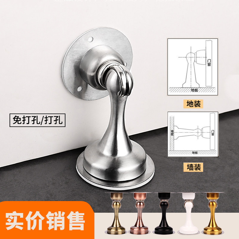 Door suction-free Perforated Dressing Room Ground Suction door stopper Anti-collision wall mute stainless steel door STRONG MAGNETIC DOOR RESISTANCE INVISIBLE