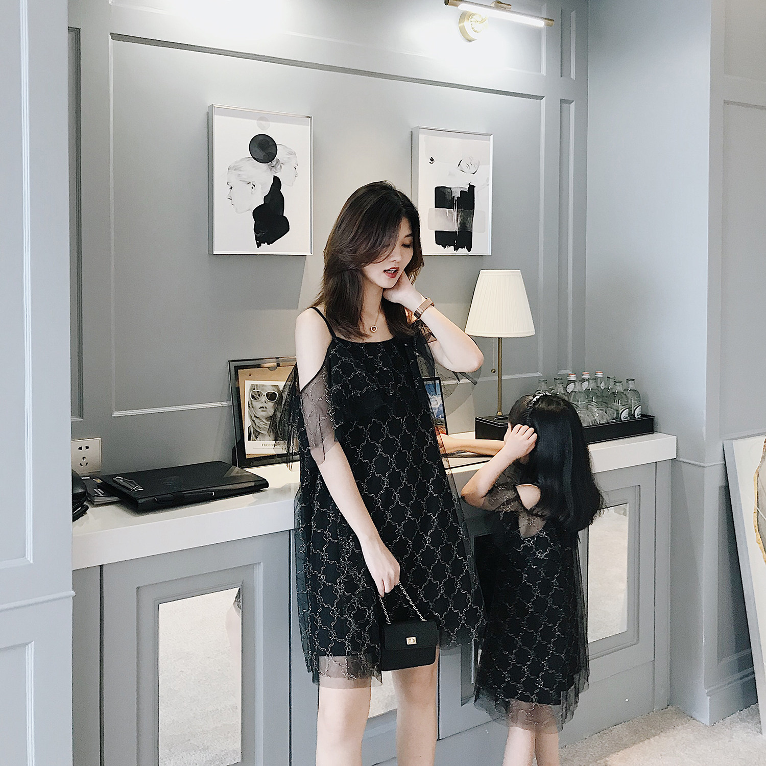 Mother and daughter in a dress.