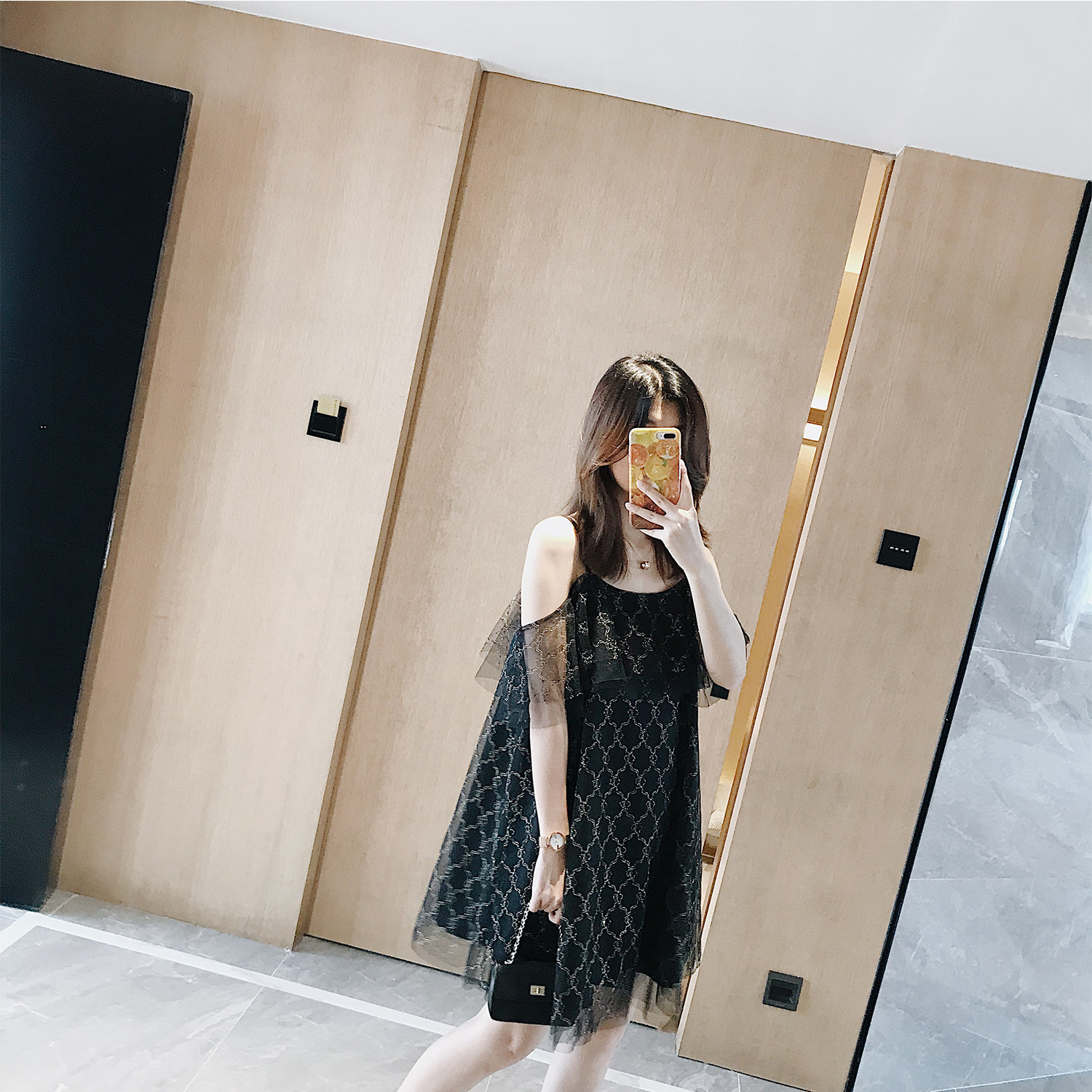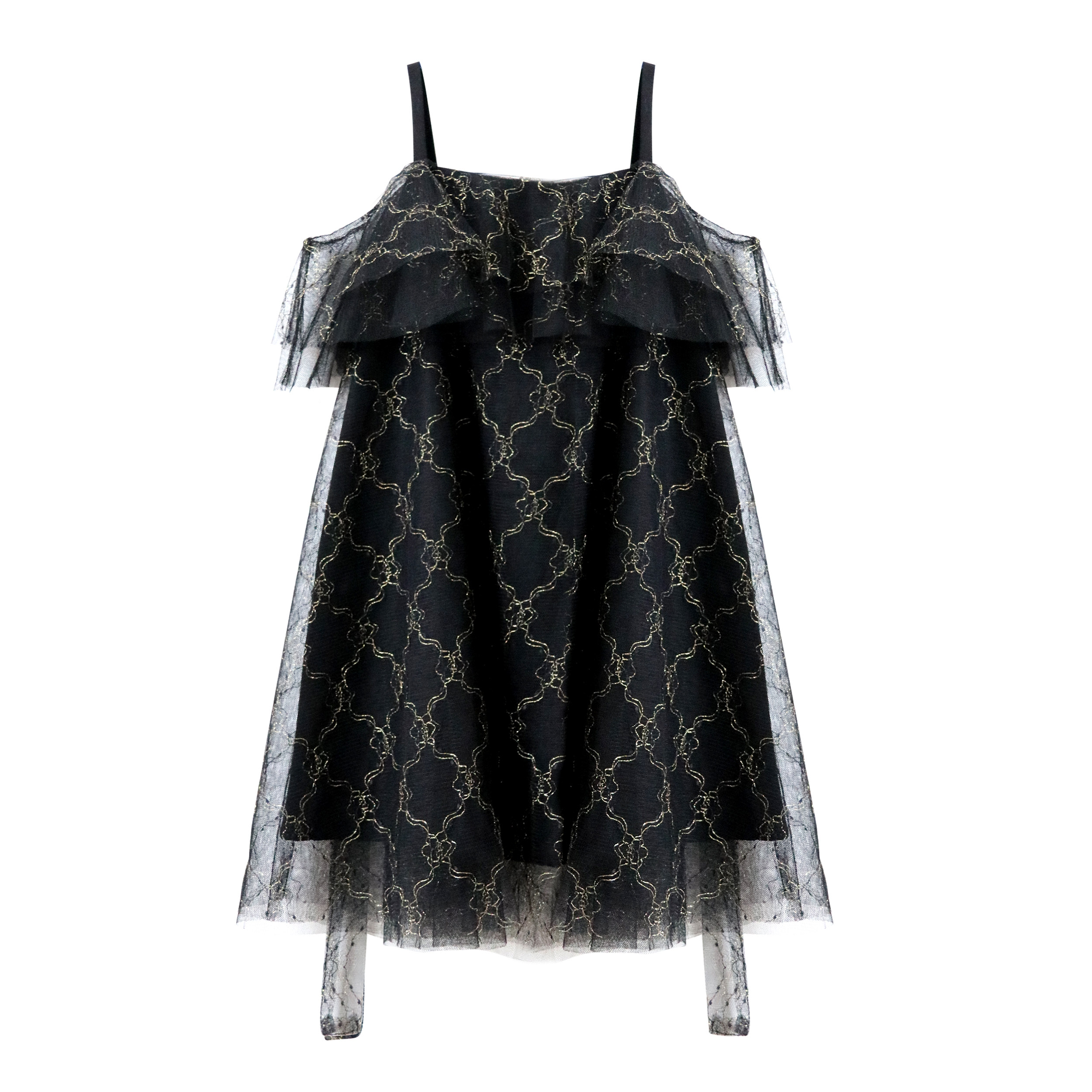 Nicanima pro-son dress with light lavish black gold harness Shoulder Veil Dress Loose fluffy skirt Fairy Skirt female dress