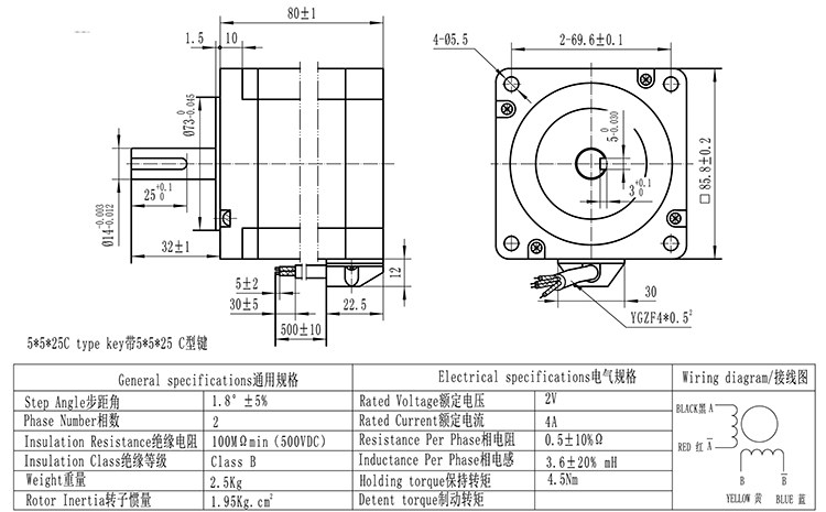 Hybrid two-phase stepping motor 4 5N large torque 80 long engraving machine drilling machine accessories 86BYGH80