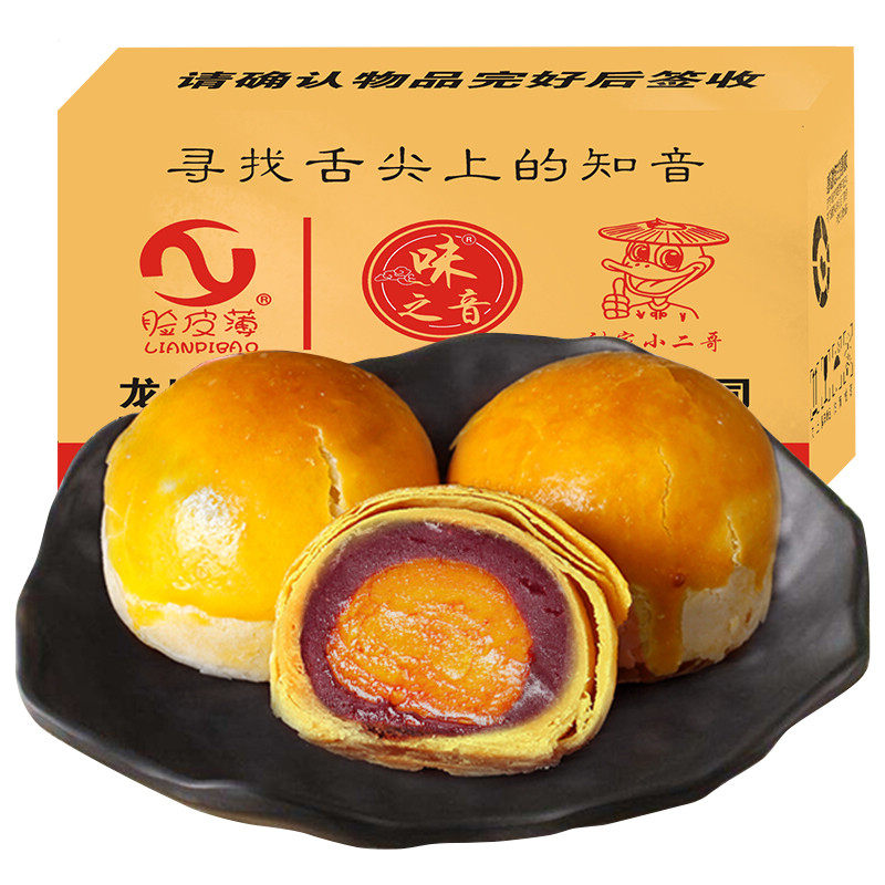 Egg yolks and snowy bridesmaids Sandwich Sea Duck Egg Red Bean Taste Purple Sweet Potato Flavor Traditional Pastry Mooncake Snacks