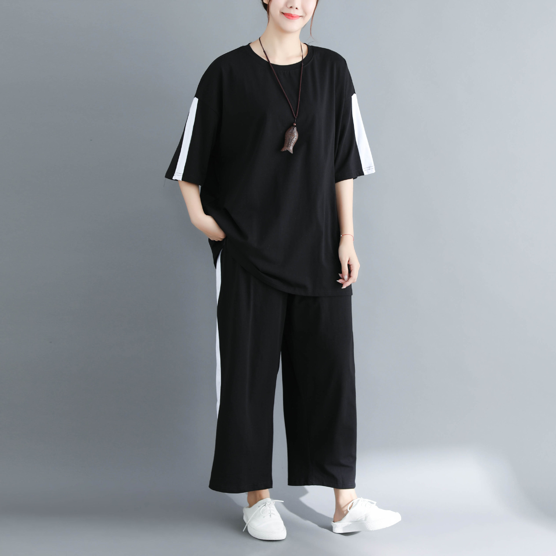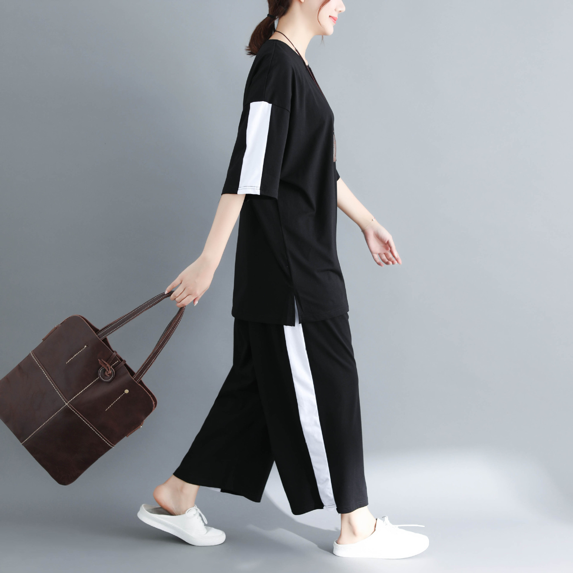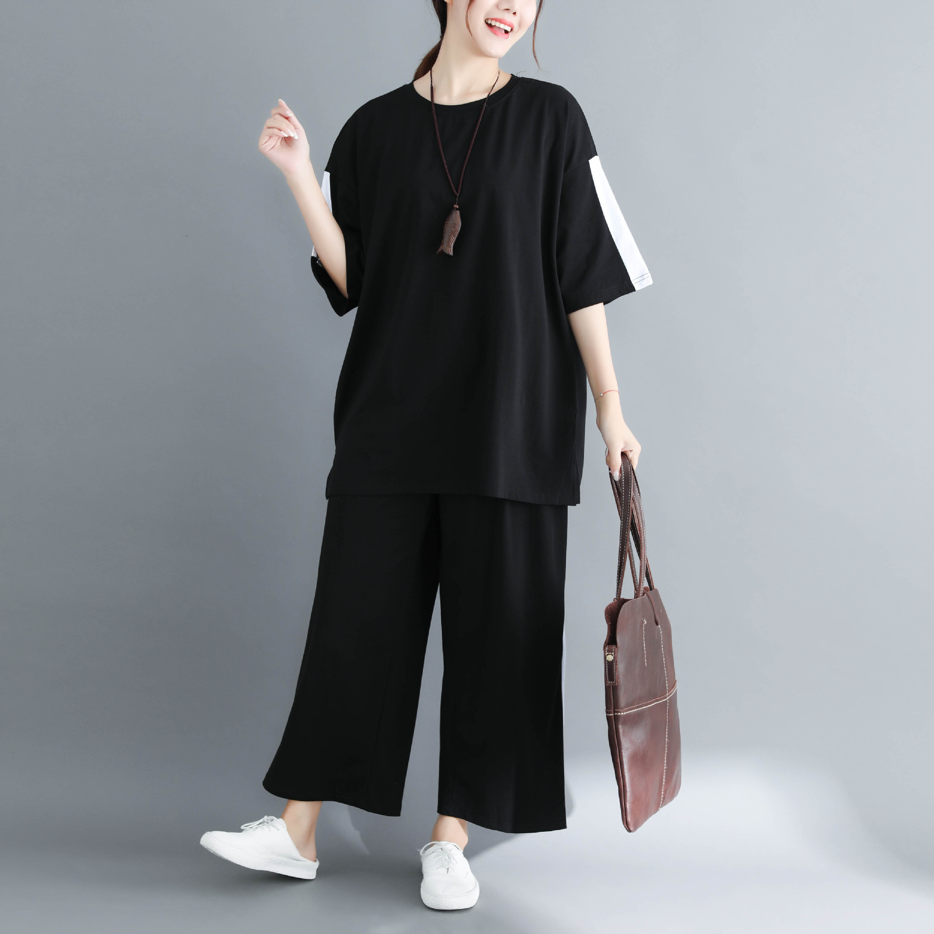 Extra fat plus size sports suit female 300 jin 240 foreign style fat mm200 cotton wide-leg pants two-piece set 250