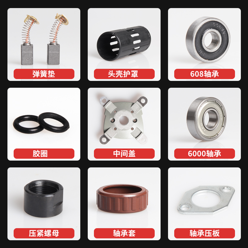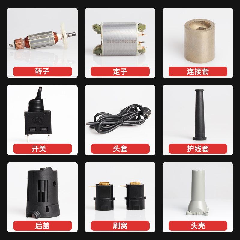 Purple white cyan yellow red blue color clamp three-piece spring hairpin head (inner hole 6) spring hairpin head (inner hole 3) compression nut switch carbon brush rotor stator power cord guard sleeve connection sleeve