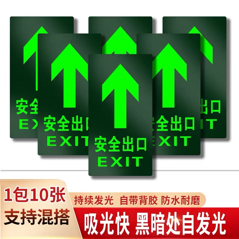 Safety exit floor stickers wear-resistant signs stickers luminous wall stickers self-emitting fluorescent signs feet kindergarten ground escape luminous wall stickers signs safety passage signs hotel decoration corridors