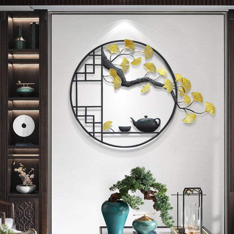 New Chinese style iron hanging decoration welcome pine Zen wall hanging living room dining room wall decoration creative porch wall pendant