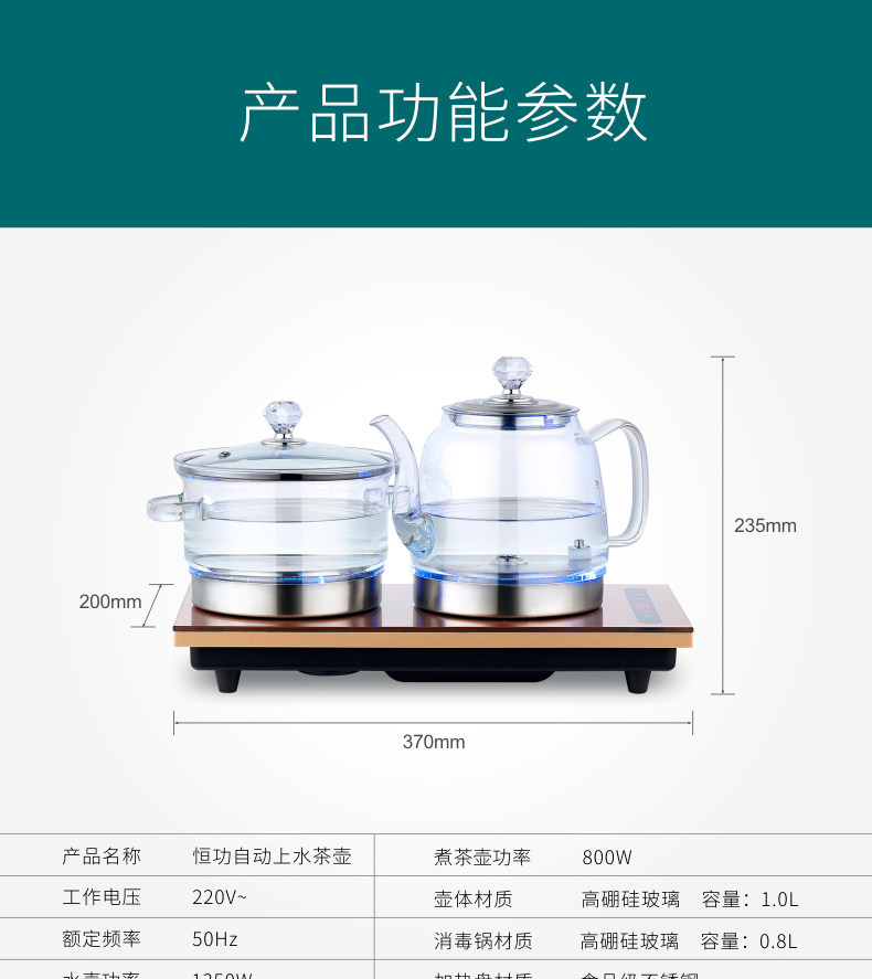 Fully automatic bottom water electric kettle, glass teapot, tea table, kettle, one-piece, special embedded for making tea