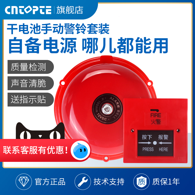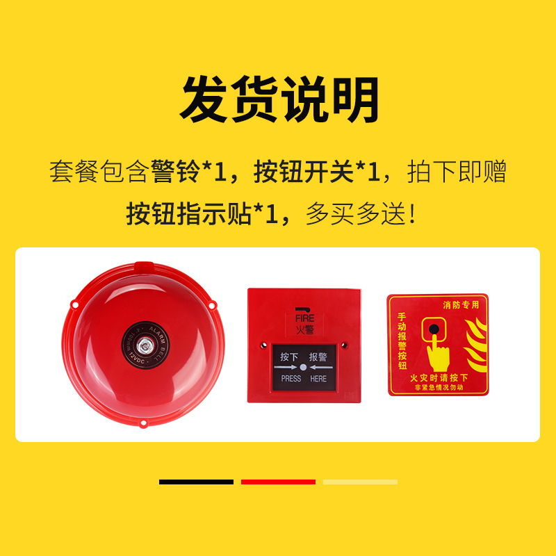 Dry battery emergency alarm bell set Factory inspection fire alarm bell Fire one-button manual button switch alarm