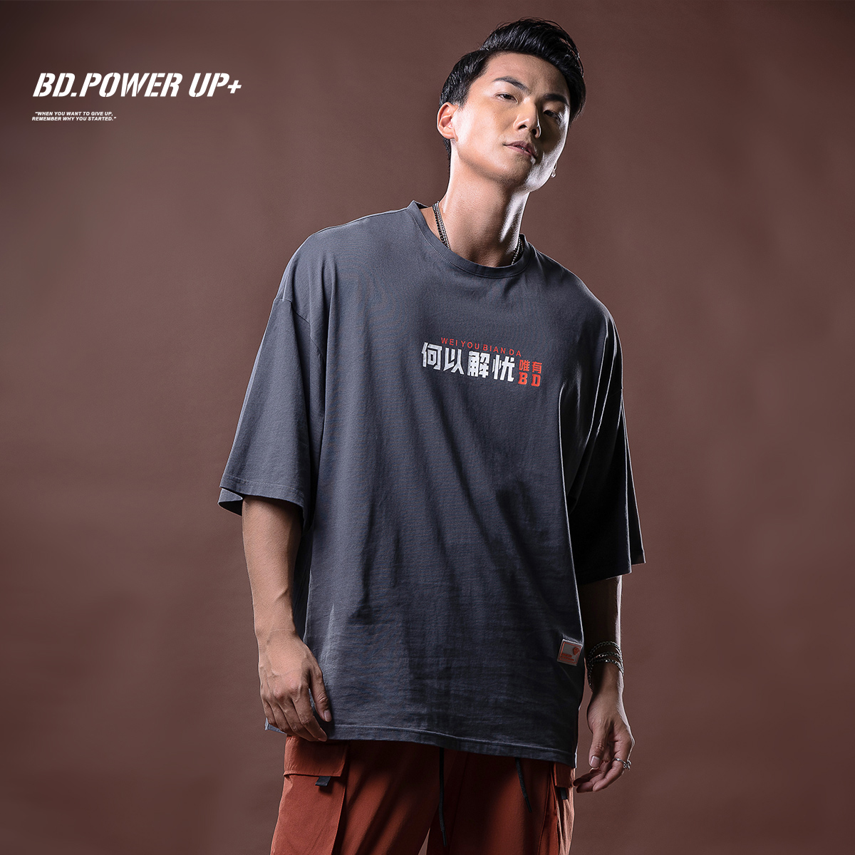 BD bodybuilding man short sleeve T-shirt cotton printing loose summer running exercise fitness sports T-shirt male tide