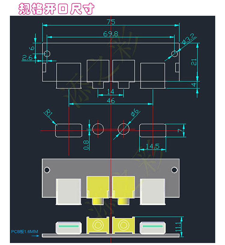 Utecheng Front USB audio interface board plus cable 2 USB3.0, 2 audio interfaces