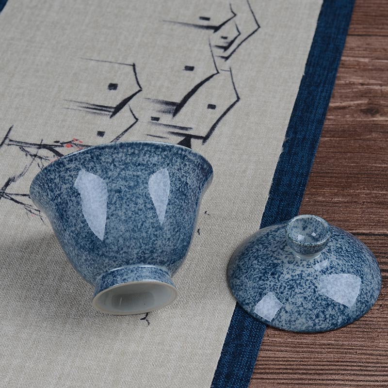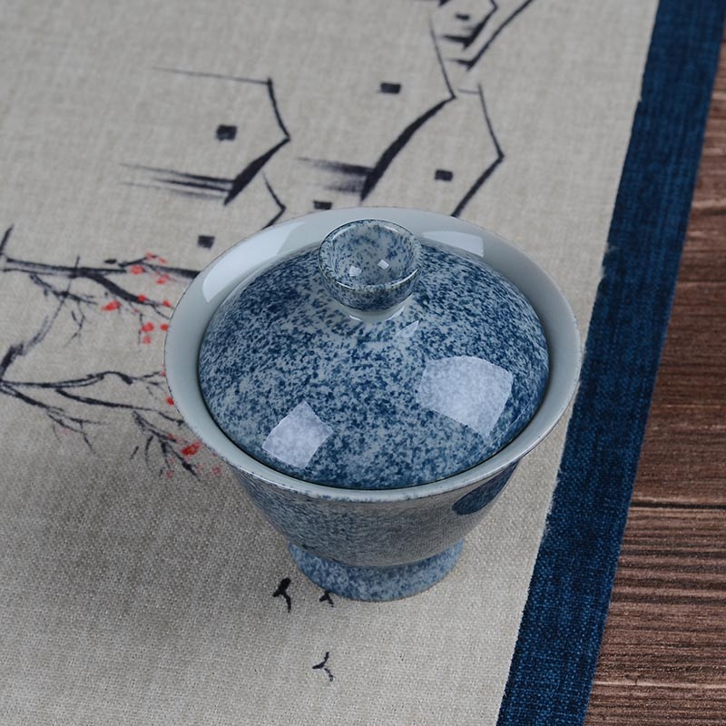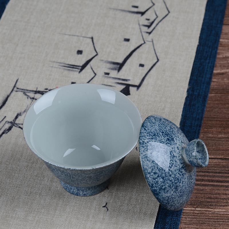 Jingdezhen ceramic cover bowl tea cup large unsupported high foot wide mouth anti-hot plant ash glaze tea bowl kung fu tea set