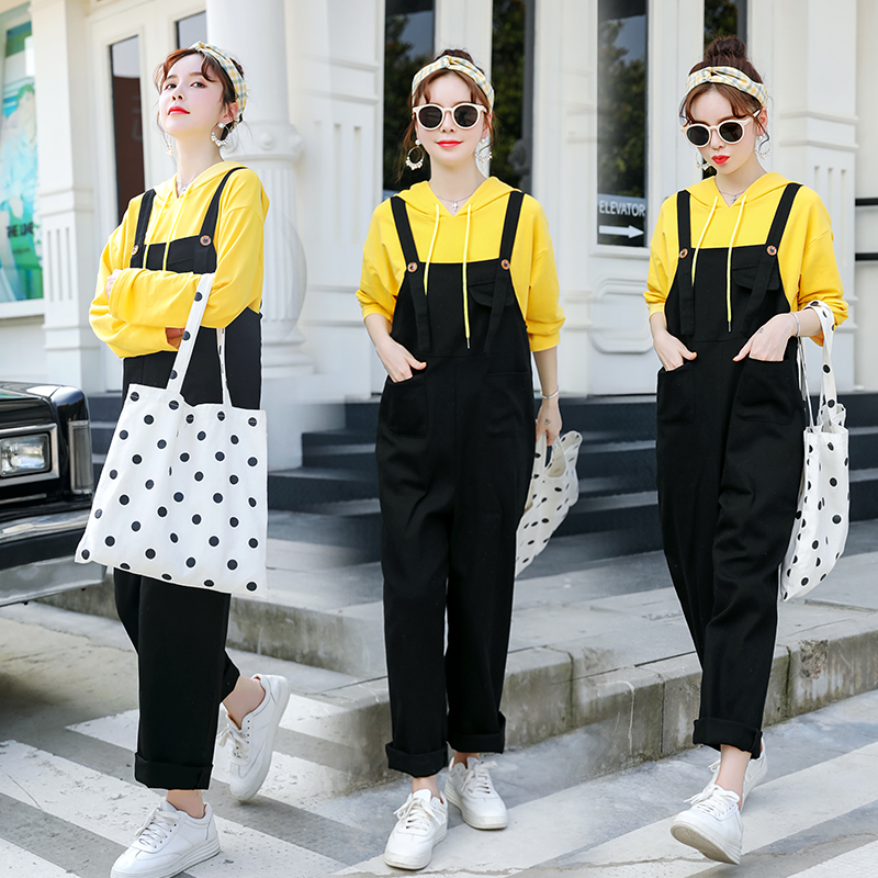 Army green pants + yellow hoodie Army green black pants + yellow hoodie black