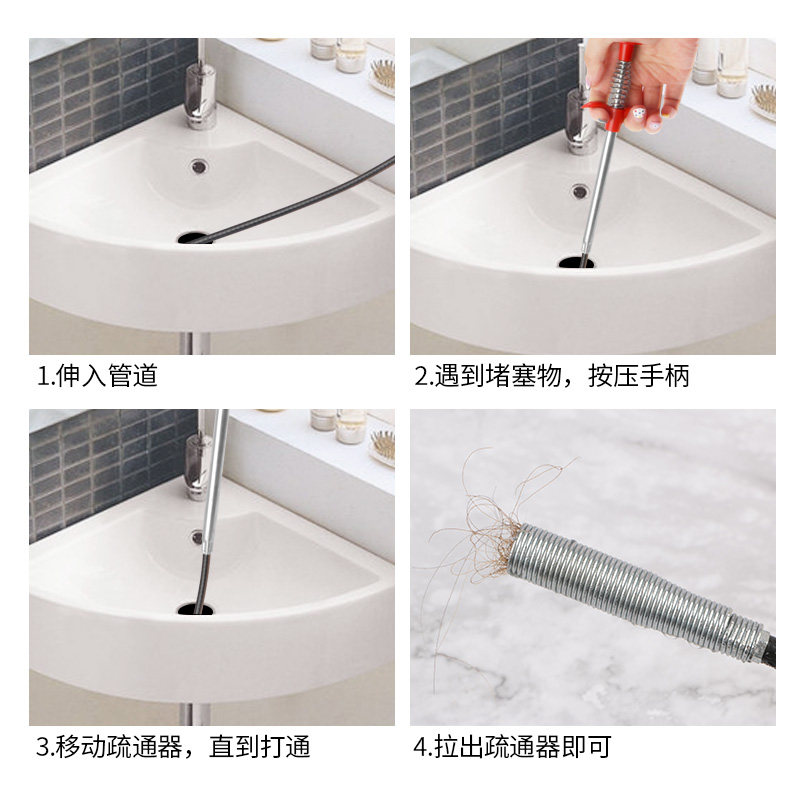 Pipe dredge household kitchen sewer tool water pipe hair cleaner steel wire spring hair hook