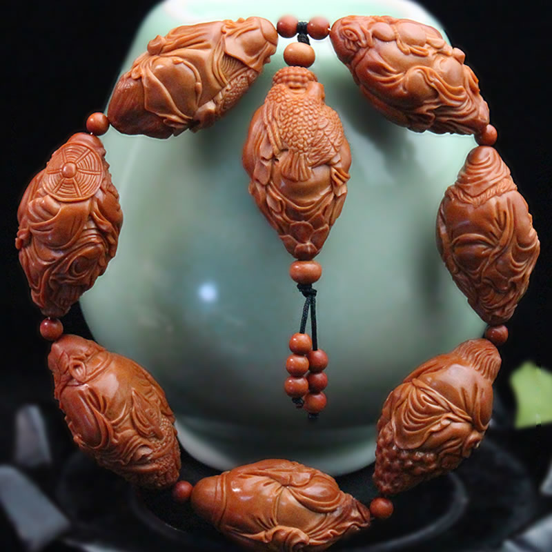 Sugong famous olive core carving pure hand-carved big seed Maitreya Zhongkui Guan Gong Tathagata Qunxian Huiwen play bracelet