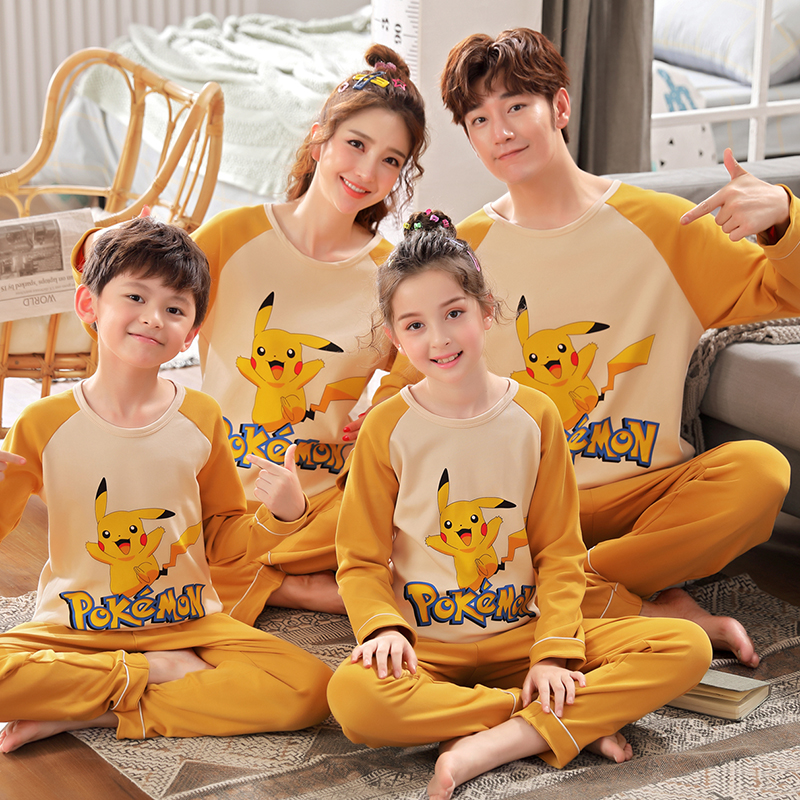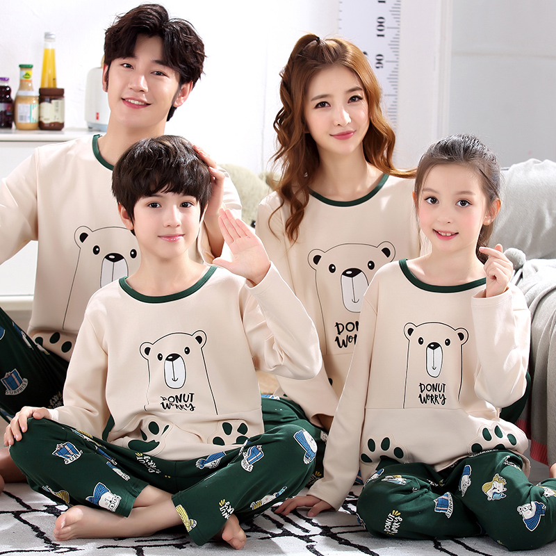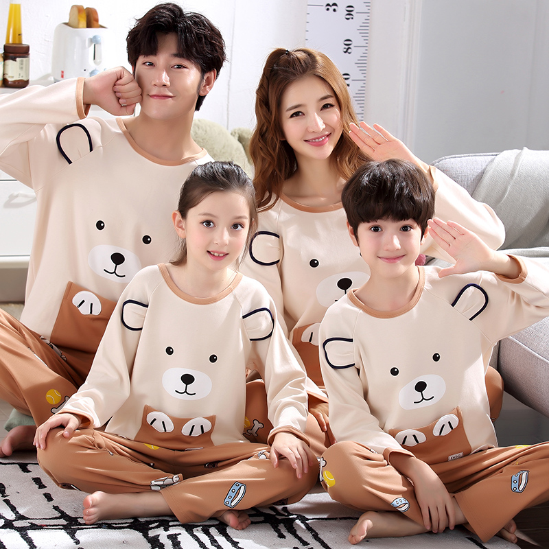 Pure Cotton Children Sleepwear Women's Summer Long Sleeve Spring Autumn Mother Girl Child's Sleepwear Men's family Three-mouth home Suit Suit Thin