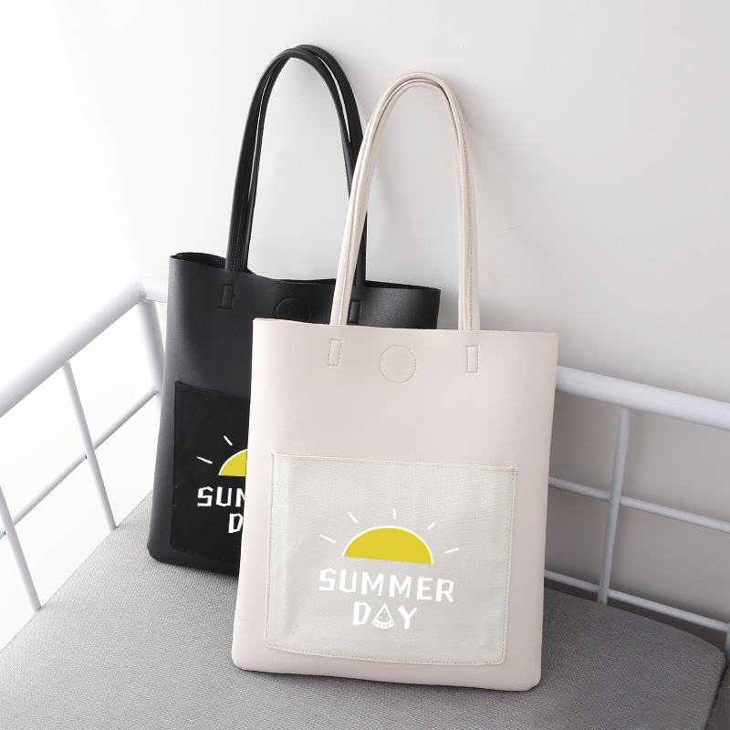 Shoulder bag women's big bag soft leather bag Korean campus students class bag sun portable fashion Joker women's tide bag