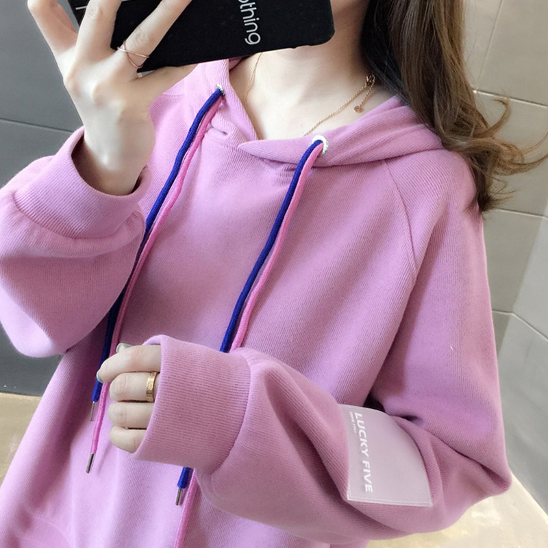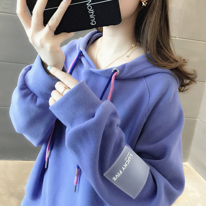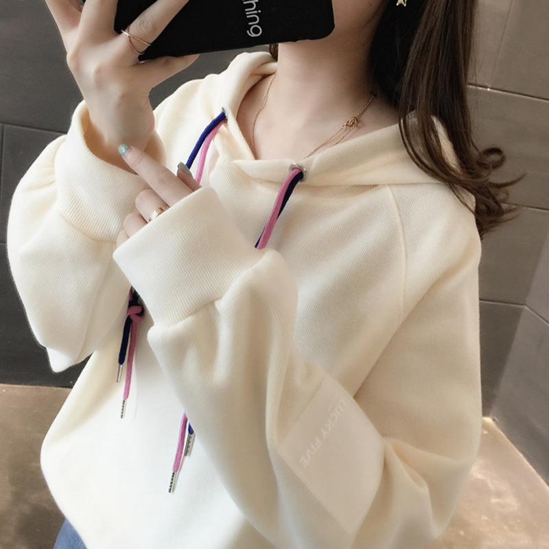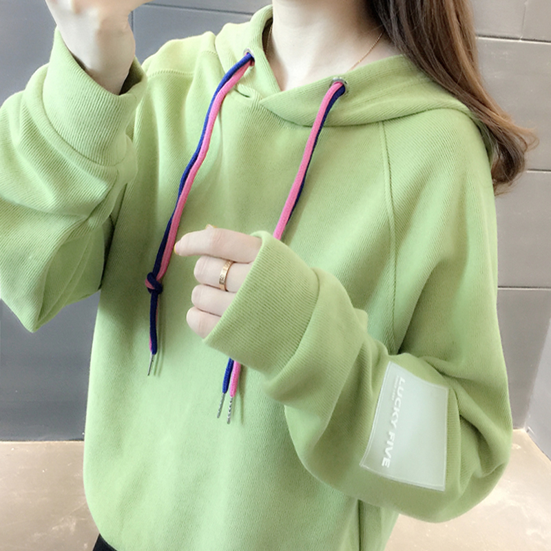 Hooded sweatshirt women's spring and autumn thin Korean version ins tide loose student wild short solid color long sleeve top jacket