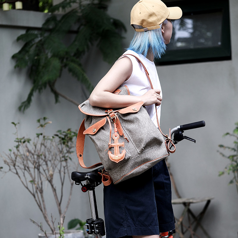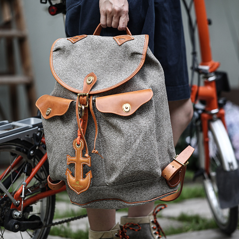 Spot HK WORKSHOP Pepper Salt Cow Leather P40 Retro Trend Travel Large Capacity Double Shoulder Commuter Computer Bag