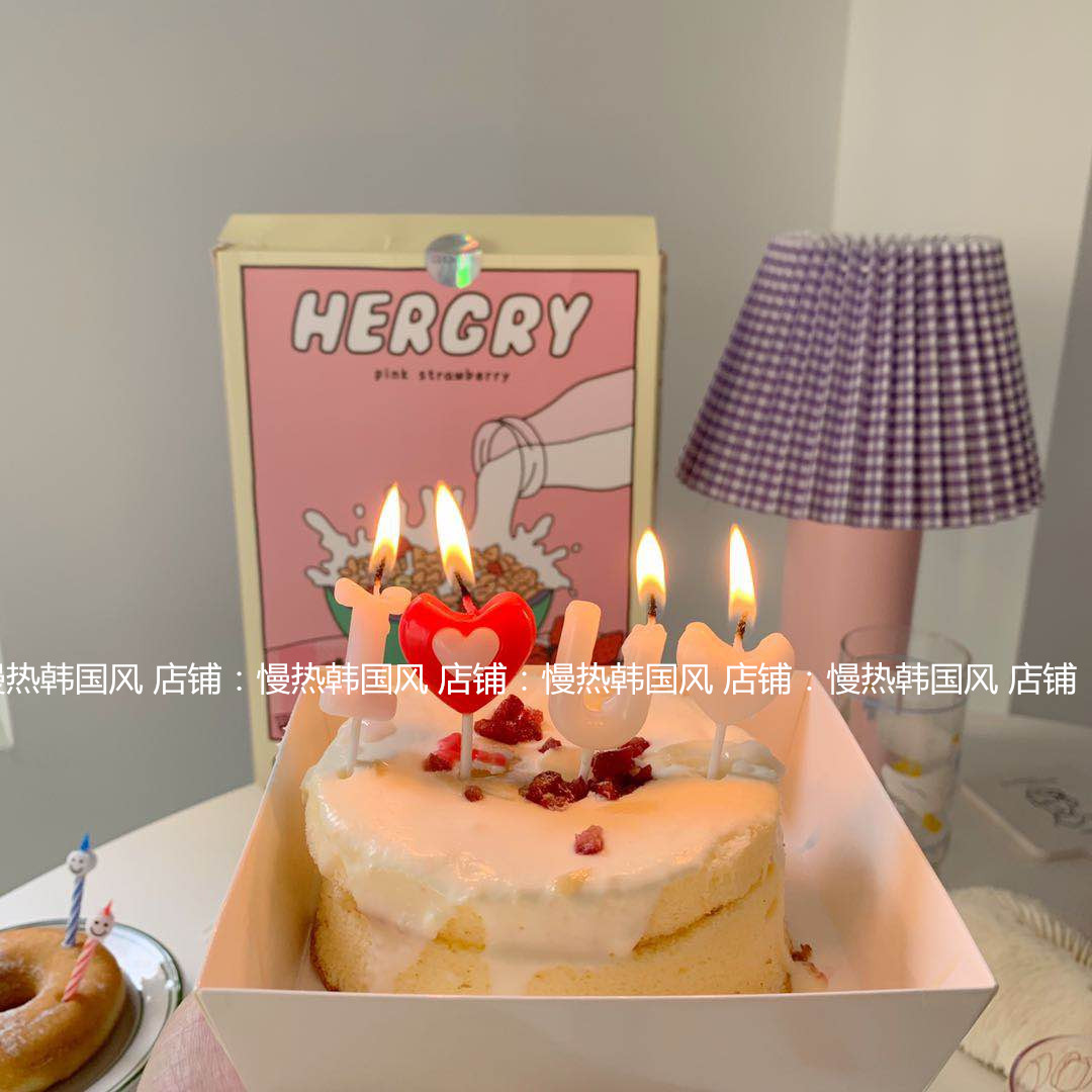 Korean ins cartoon cute i love you birthday cake candle heart shaped candle