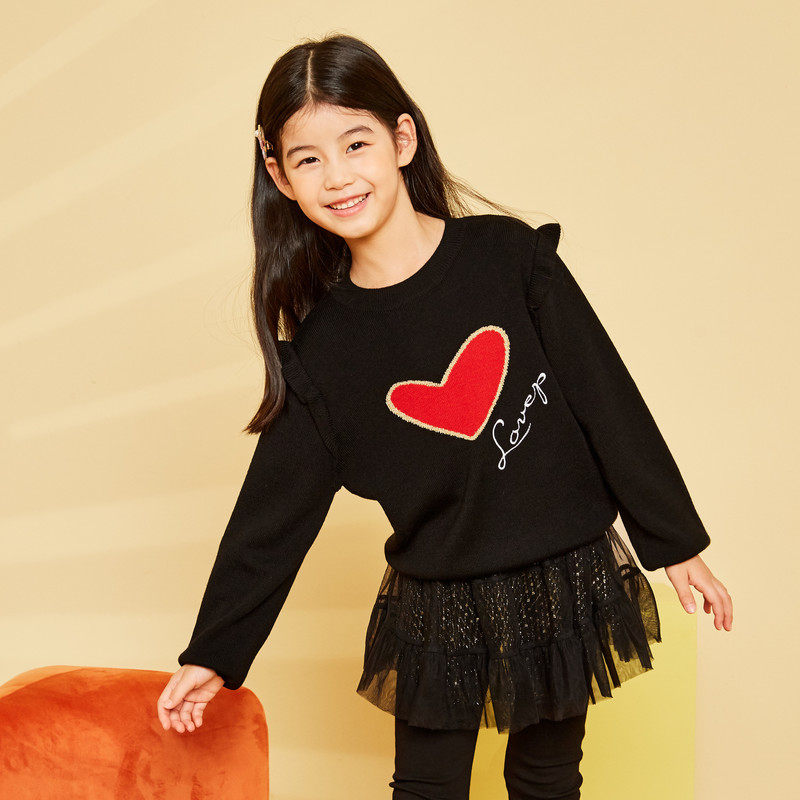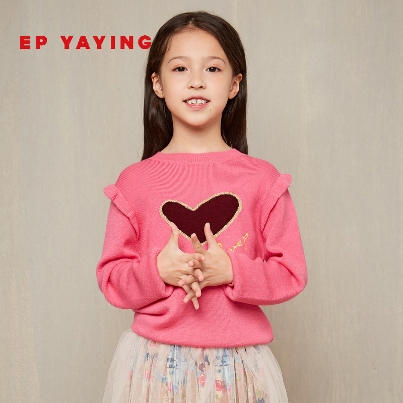 EP YYing children's clothing girl's autumn winter new loving fungus side foreign pie children's knitted sweatshirt hooded sweater warm