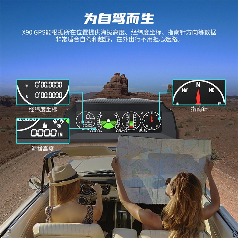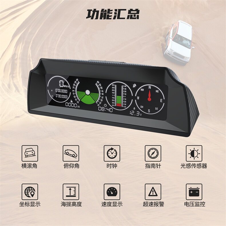 Car HUD Spike Head Display High Accuracy GPS Speed Altitude Compass Gradient Escort Instrument Cross-country Balance Instrument