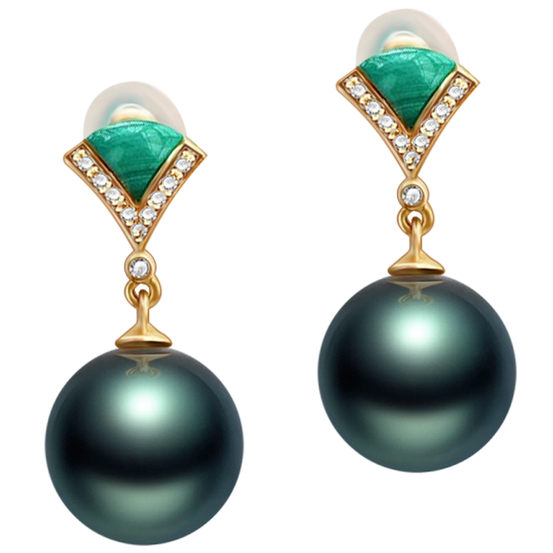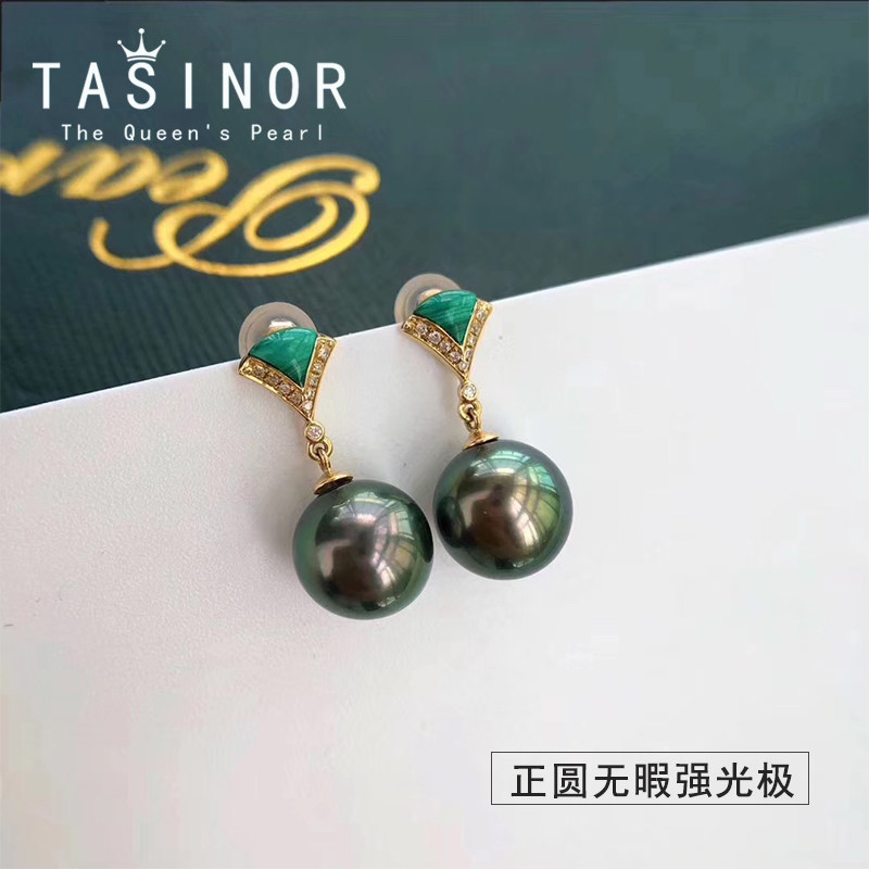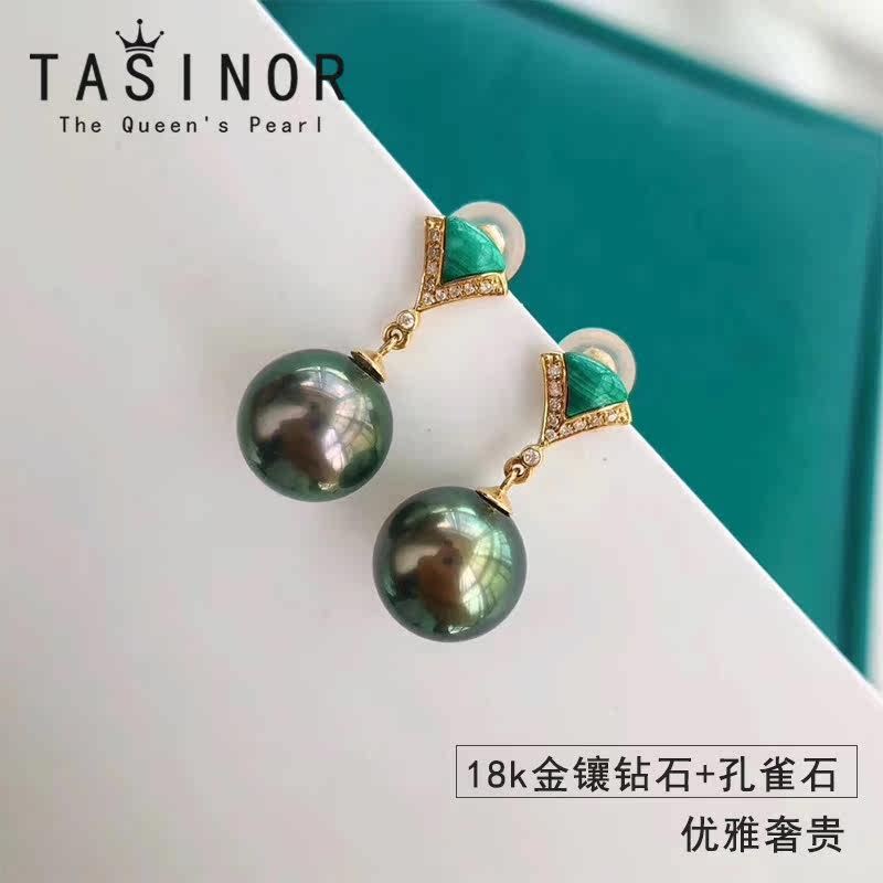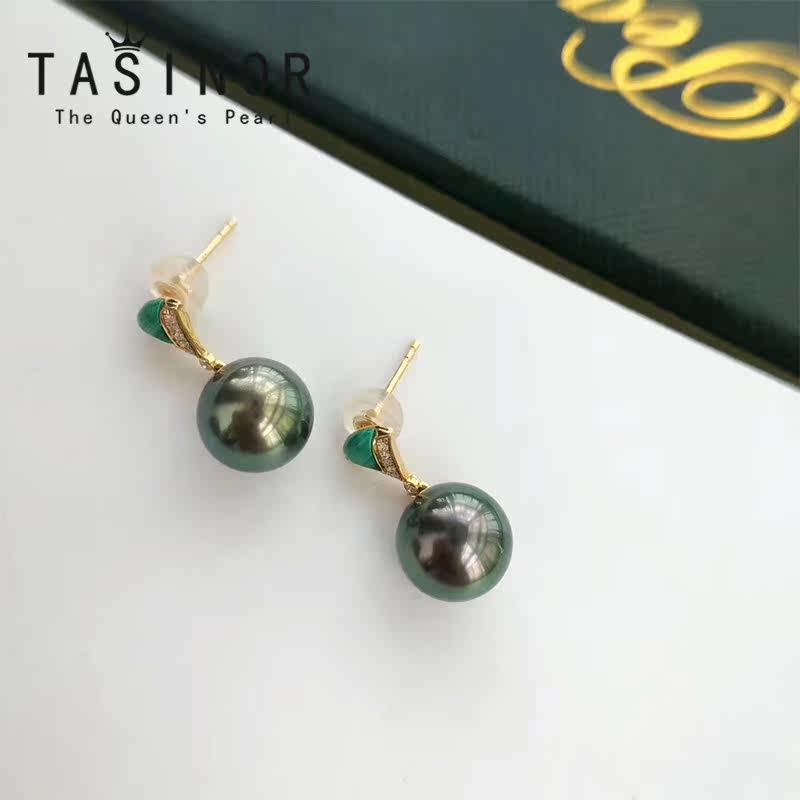 TASINOR Jewelry Tahitian Black Pearl Earrings Seawater Pearl Earrings 18k Gold Diamond Stud Earrings Gift