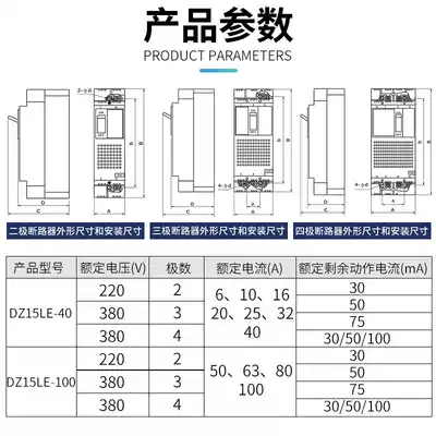 Electric DZ15LE-100 4901 3901 2901 40A 63A 100A transparent residual-current circuit breaker